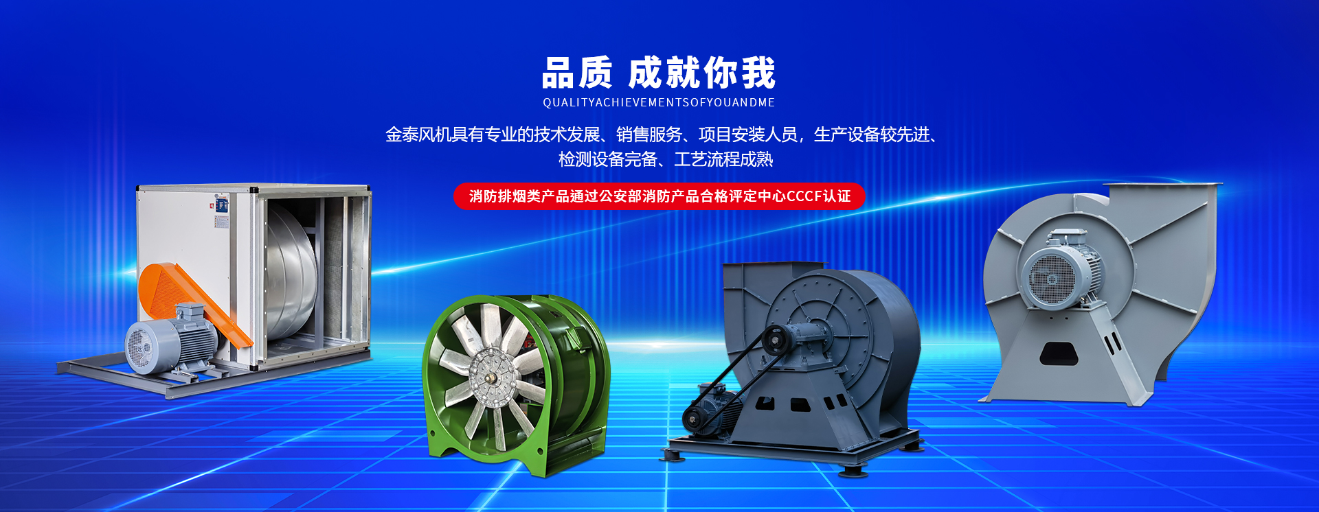 紹興市上虞金泰風(fēng)機(jī)有限公司專業(yè)從事于各類通風(fēng)機(jī)、高溫循環(huán)風(fēng)機(jī)、消防防排煙設(shè)備、風(fēng)冷設(shè)備及空氣處理的科技型企業(yè),獲得過國家科技型企業(yè)創(chuàng)新基金立項(xiàng)項(xiàng)目, 集設(shè)計(jì)研發(fā)、生產(chǎn)制造、銷售服務(wù)、工程安裝于一體的行業(yè)較優(yōu)秀的企業(yè)。